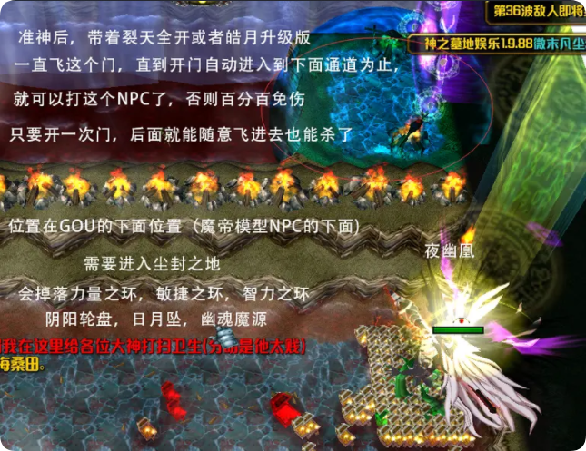 千丝任务:杀死妖皇后激活妖皇(千丝)任务,爆出浩劫、骨灰、几率妖皇令和天晶无泪水,(激活怪物荆棘特效,需带魔免项链,部分英雄无视),